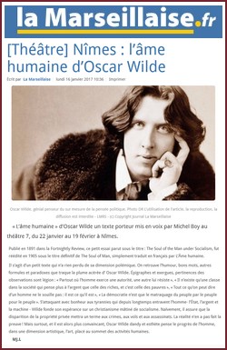 « L’âme humaine » d’Oscar Wilde un texte porteur mis en voix par Michel Boy au théâtre 7, du 29 janvier au 26 février à Nîmes. |  Lire l'article>> |